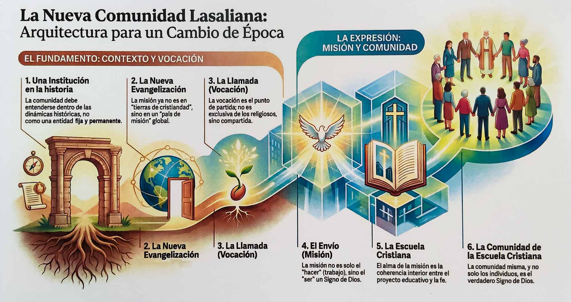 “… no se trata tan solo de refundar la Comunidad Lasaliana, sino de refundar esa institución de Iglesia que llamamos Comunidad consagrada.” Pág. 79